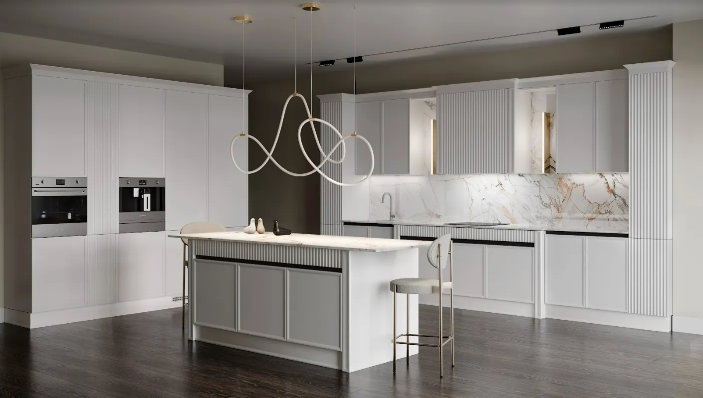Начинаем с фасада, который является трендом настоящего времени. Да, благодаря таким уникальным разработкам, мы способны задавать моду. Так вот, данный фасад изготовлен из высококачественного МДФ Egger.