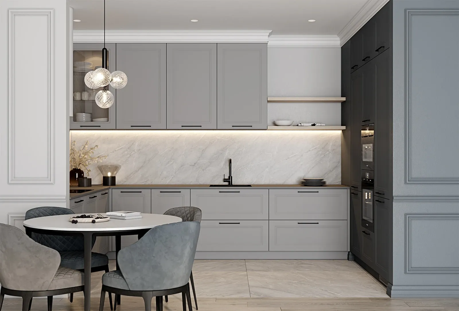 ФАСАДЫ Эйвон (МДФ/ПВХ), цвет NCS S 5010-R90B Матовый / NCS S 2502-B Матовый СТОЛЕШНИЦА Пластик HPL, 20 мм