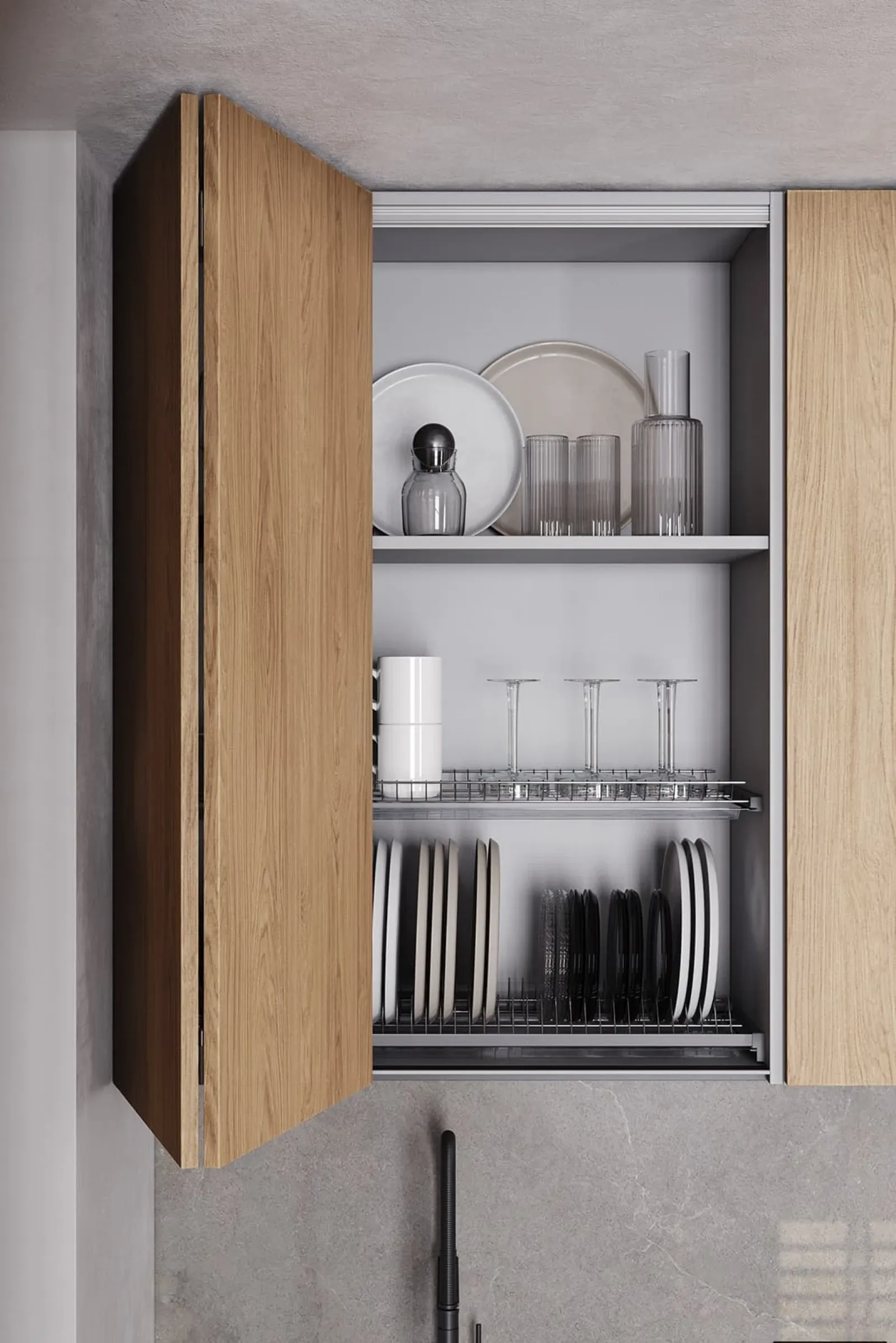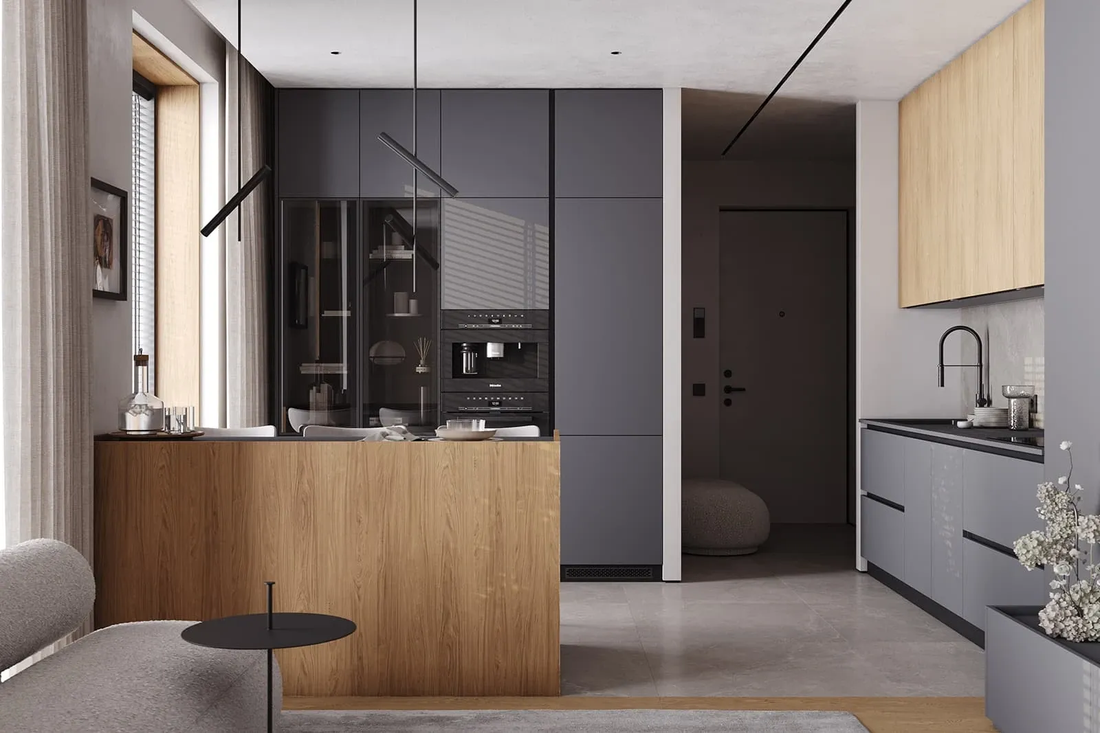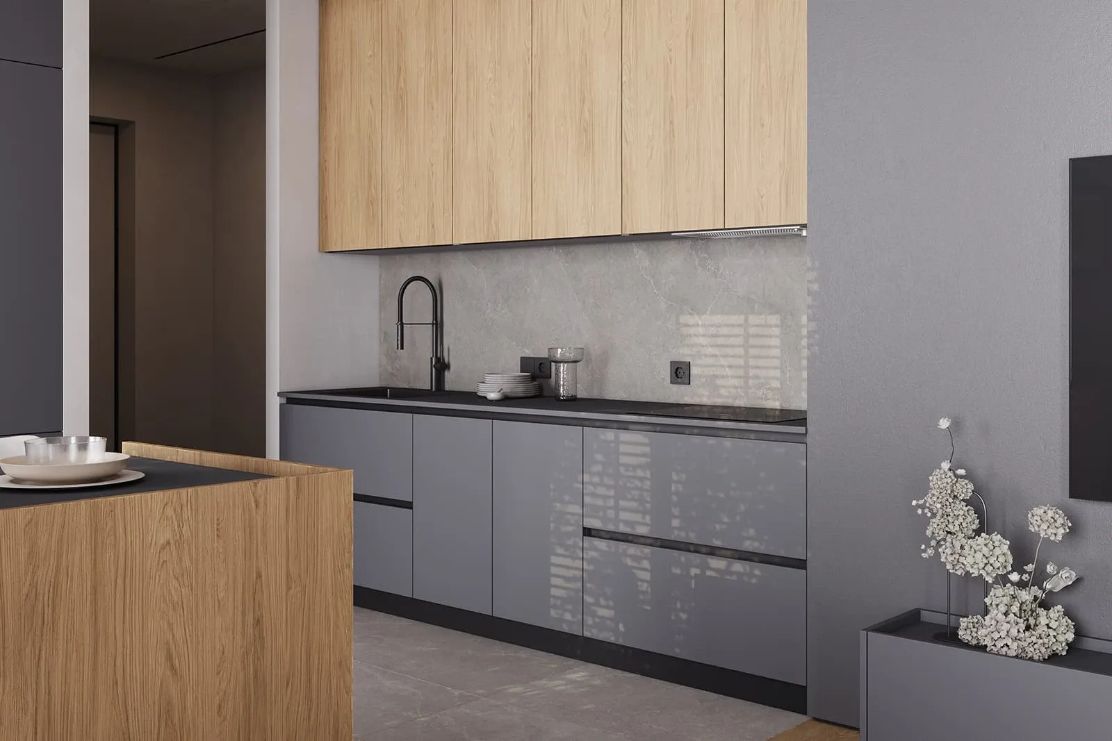 Фасады: ЛМДФ Тимбер, декор Каселла Натуральный / акрил FENIX NTM, цвет Серо-синий NTM (0724)