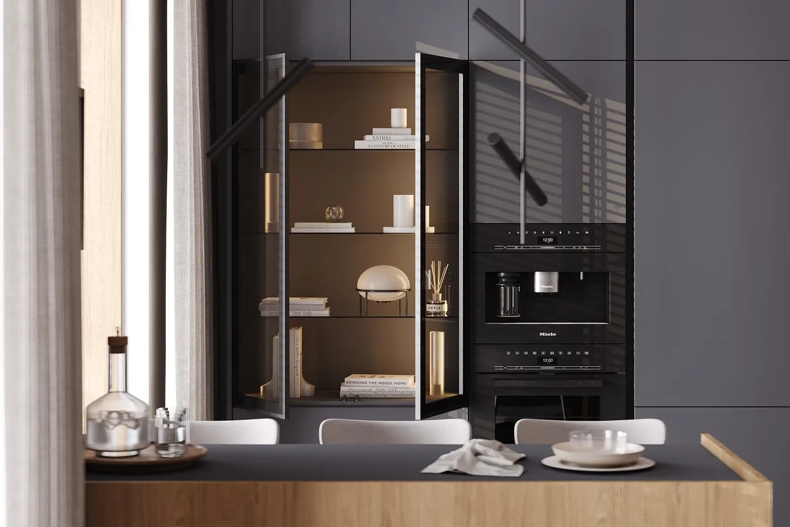 Витрины: Алюминиевый профиль А-2 Терра Черная, стекло Феникс Графит