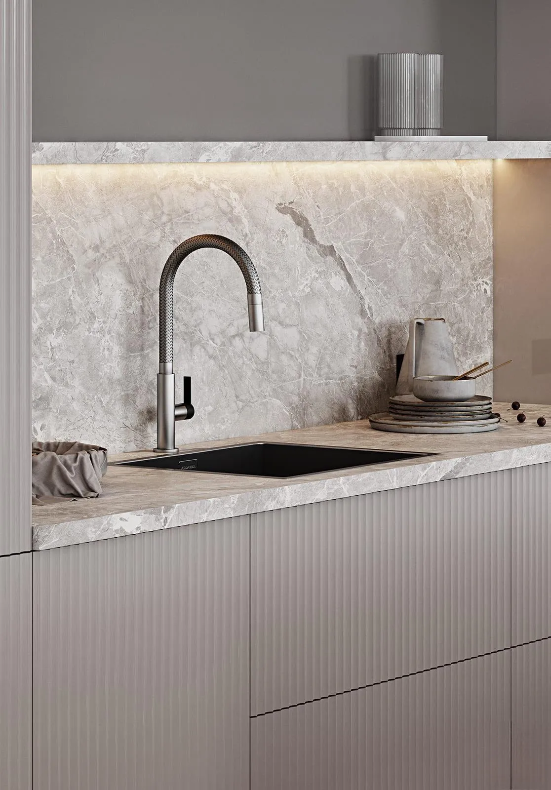 Фасады: Флавио (крашеная МДФ), цвет NCS S 2002-Y50R Глянец / «Система», цвет NCS S 5005-Y50R Матовый, NCS S 1502-Y50R Глянец