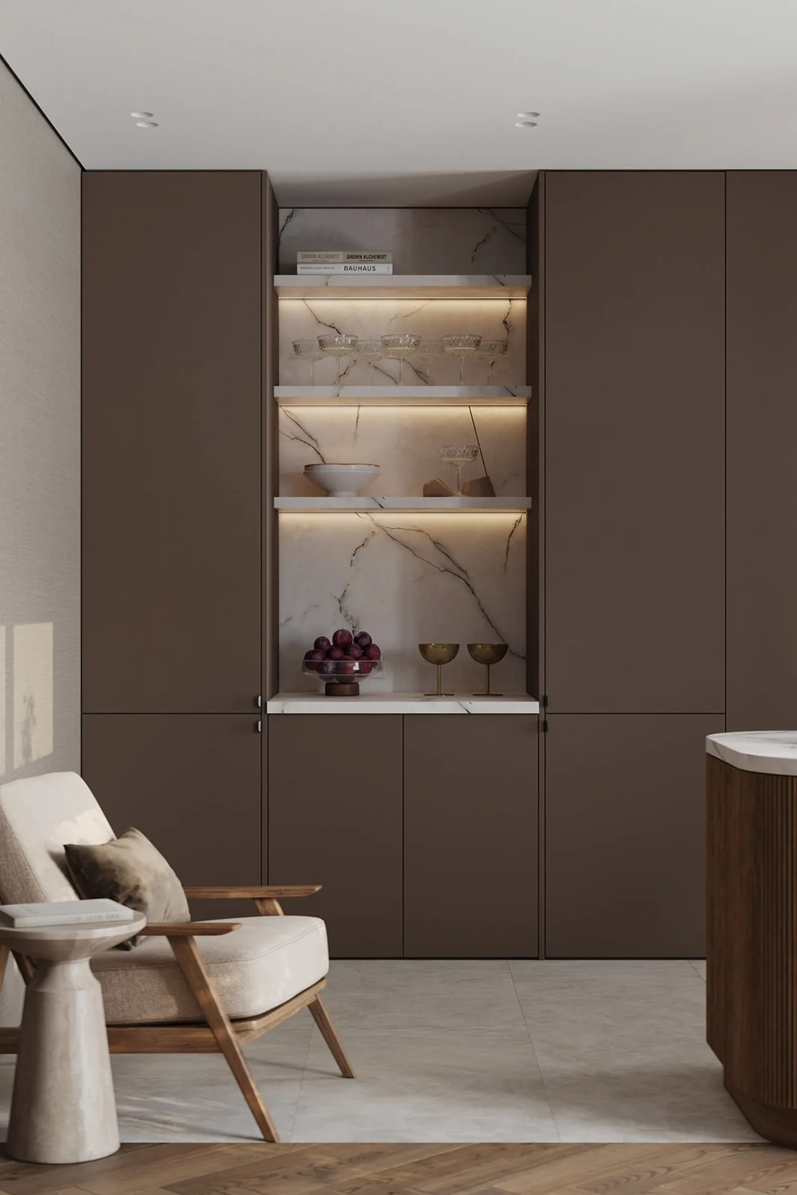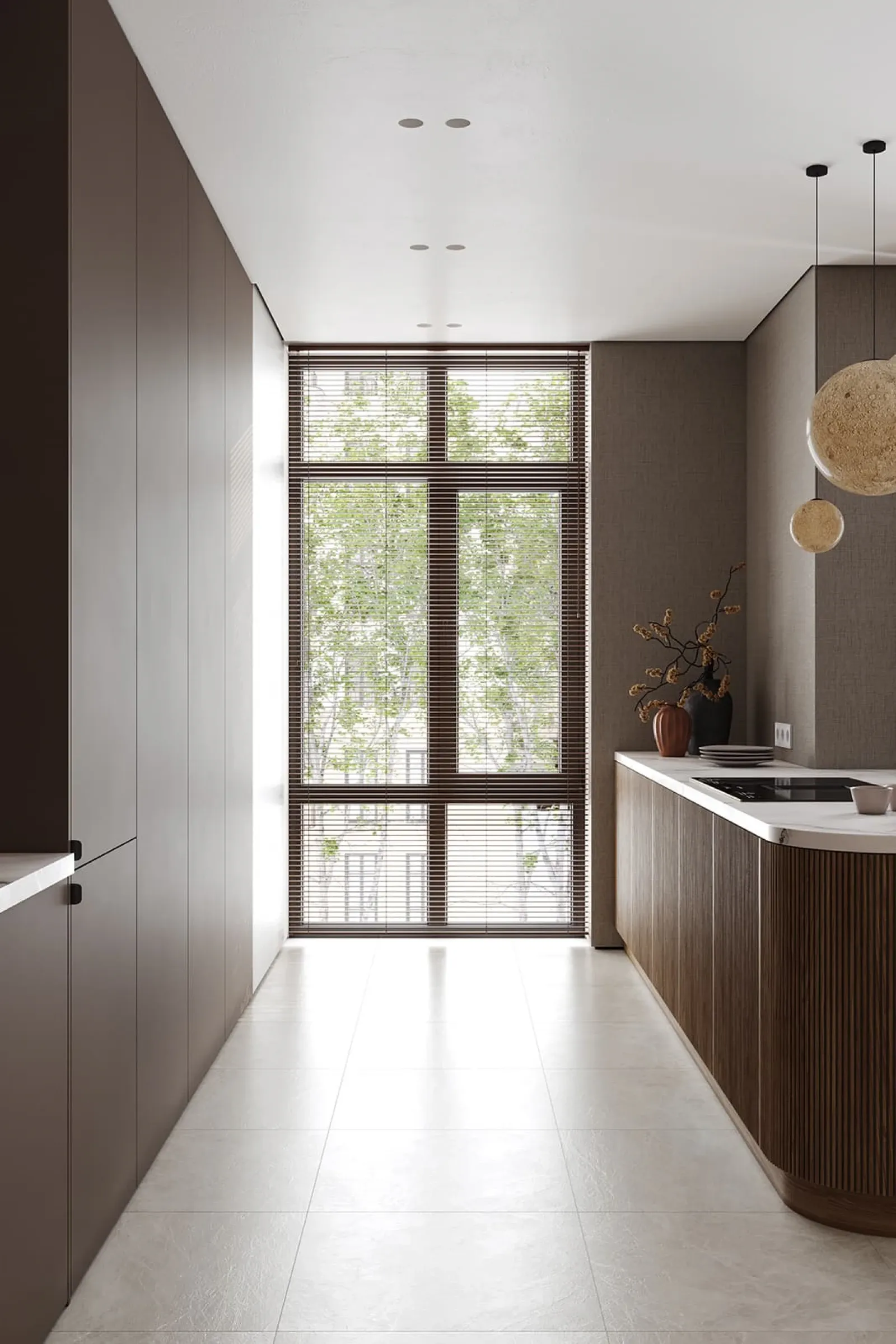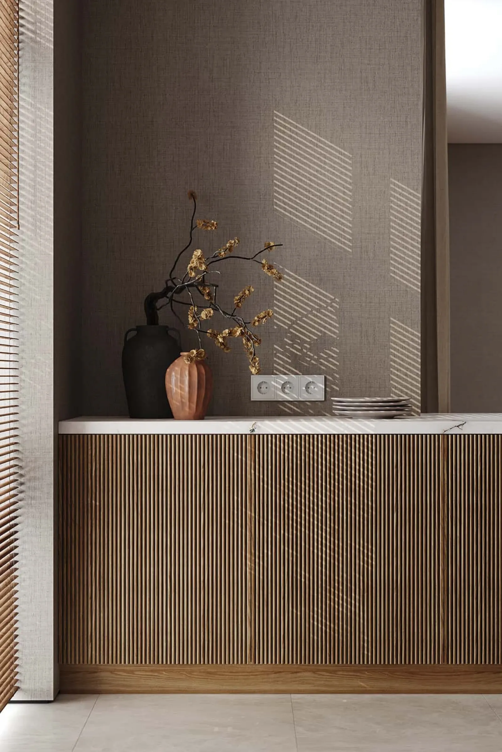 Фасады: ЛМДФ PRIME, цвет Камень Фундо / Терракота Тосканы; T430 Шпон дуба, цвет #111