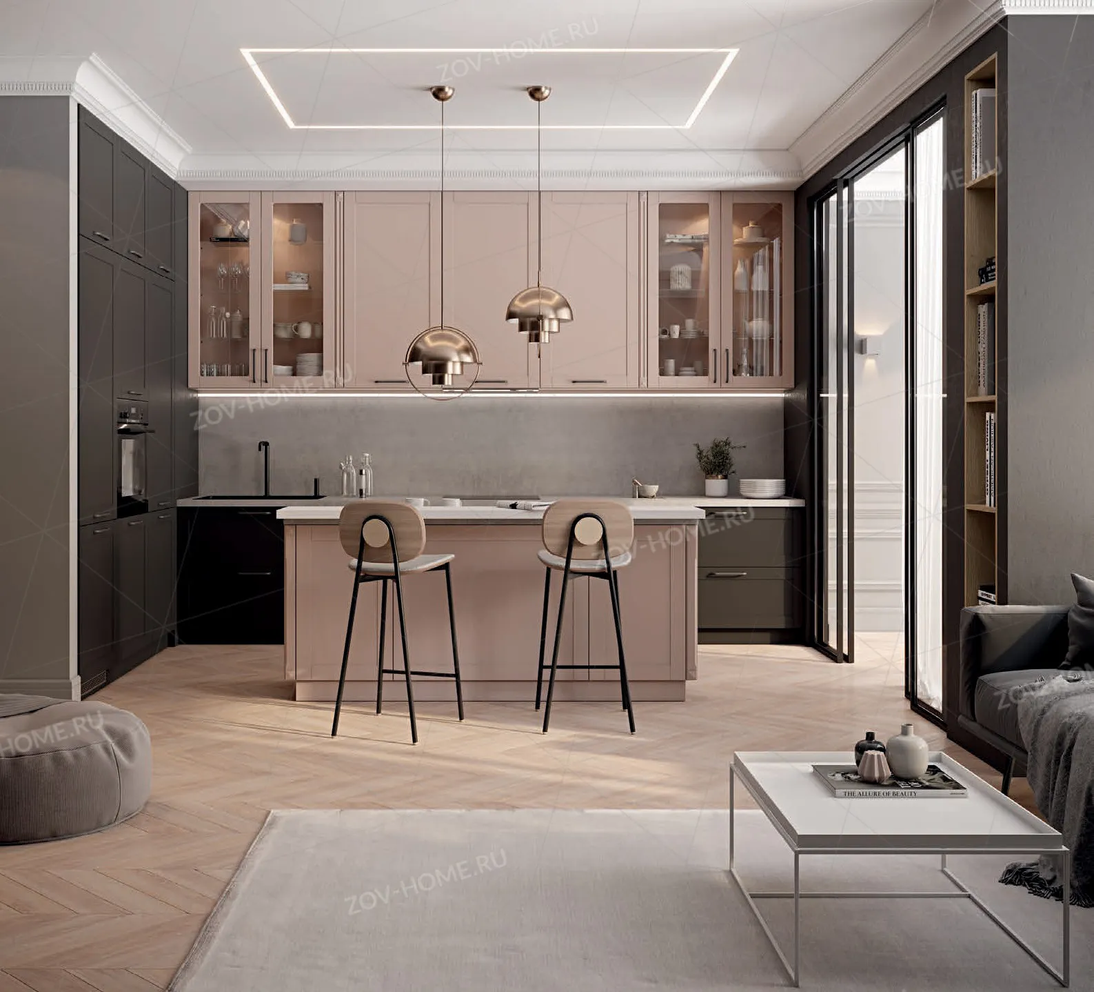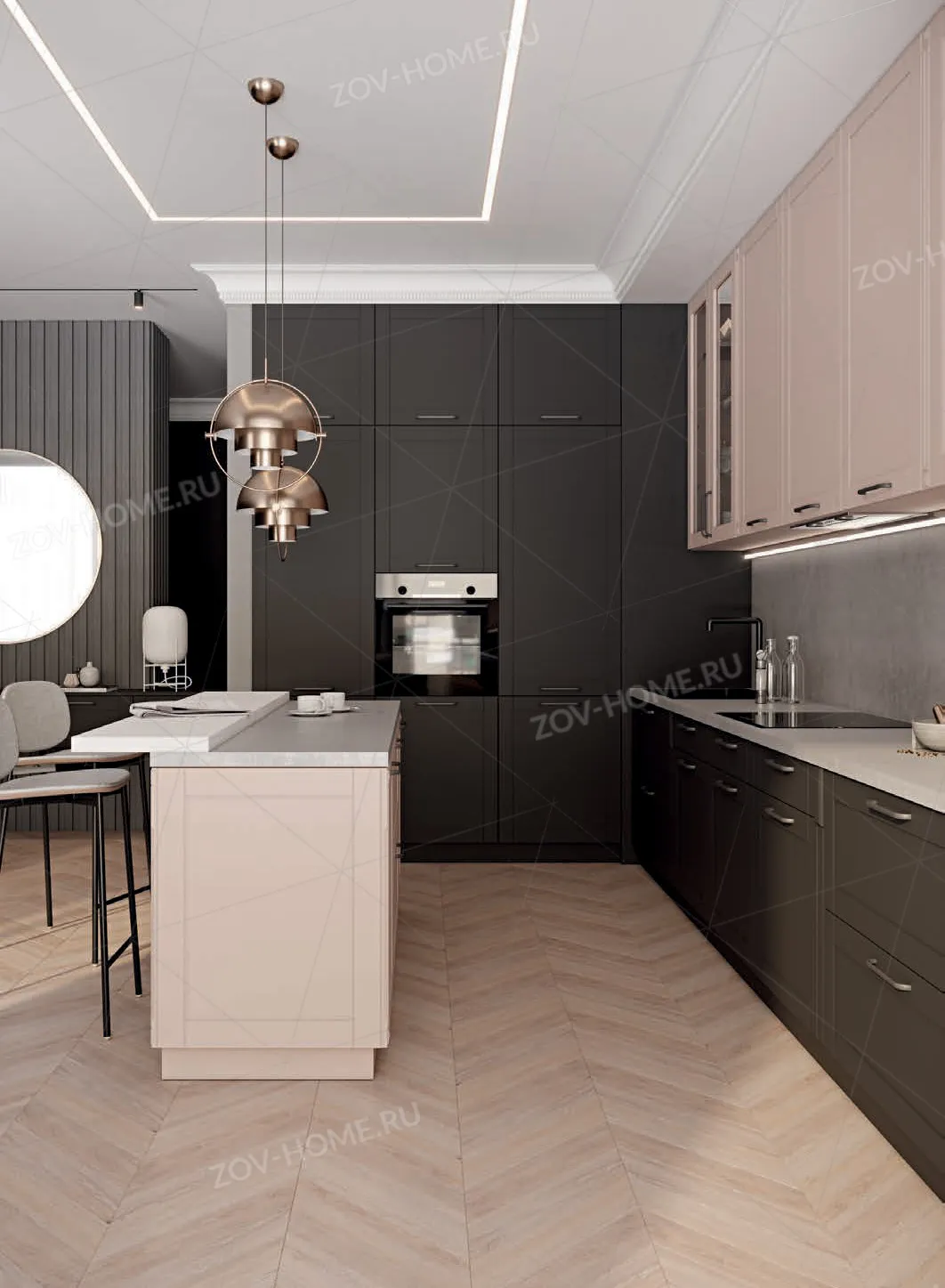 Фасады: Трент (МДФ / ПВХ), цвет NCS S 8000-N Матовый / NCS S 2010-R Матовый