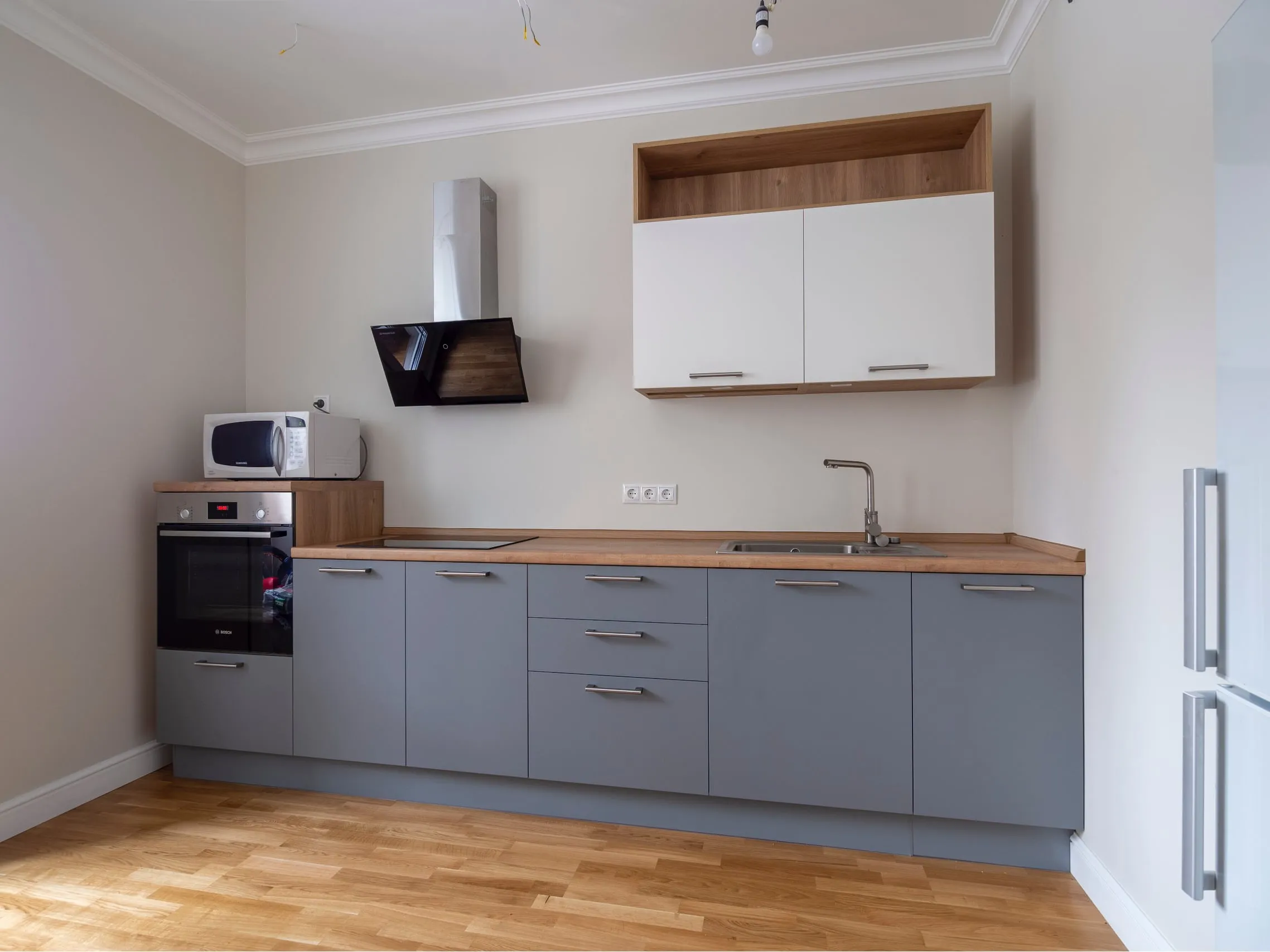 Фасады: МДФ Акрил-5 Серый мат/Белый мат