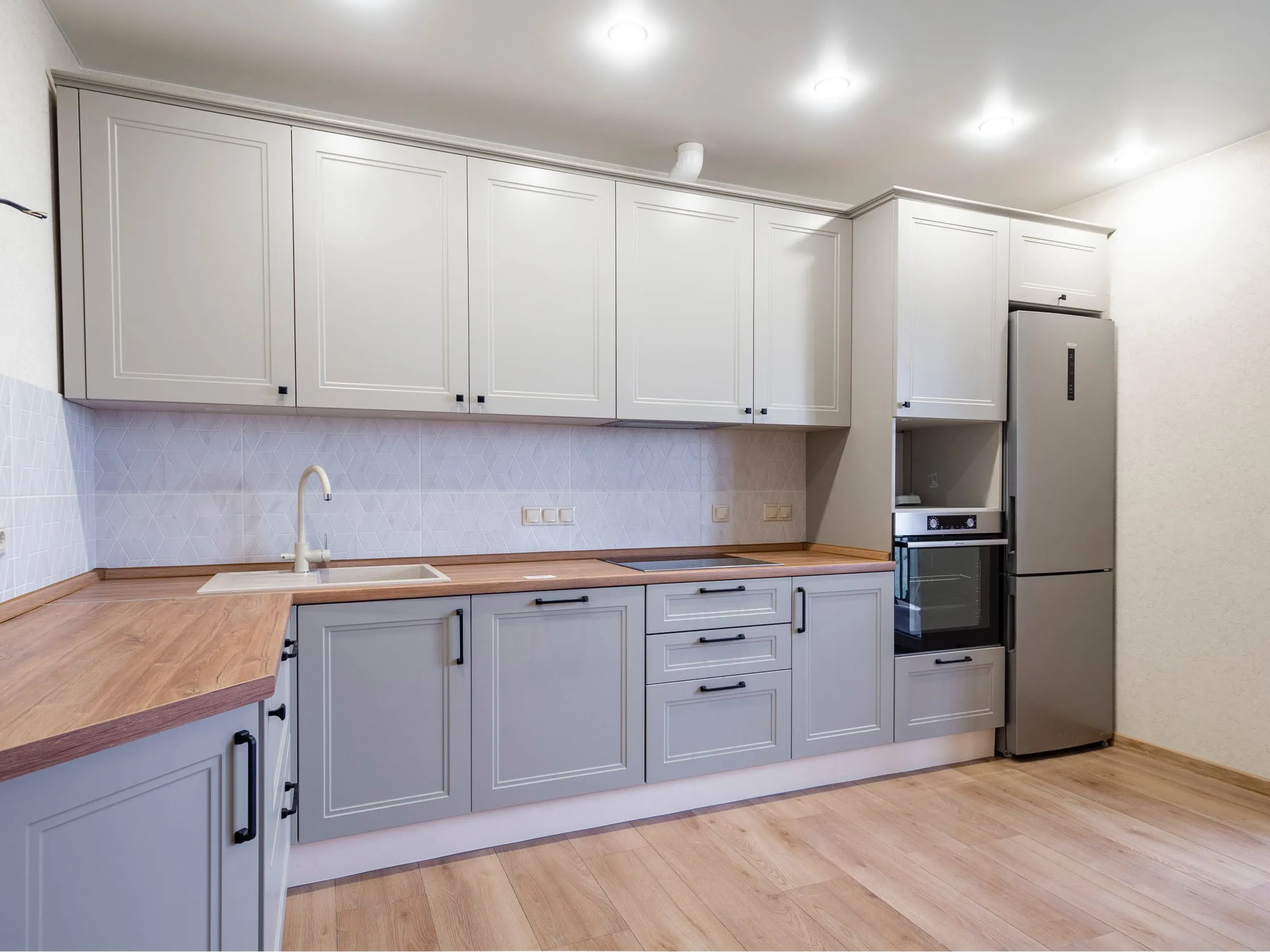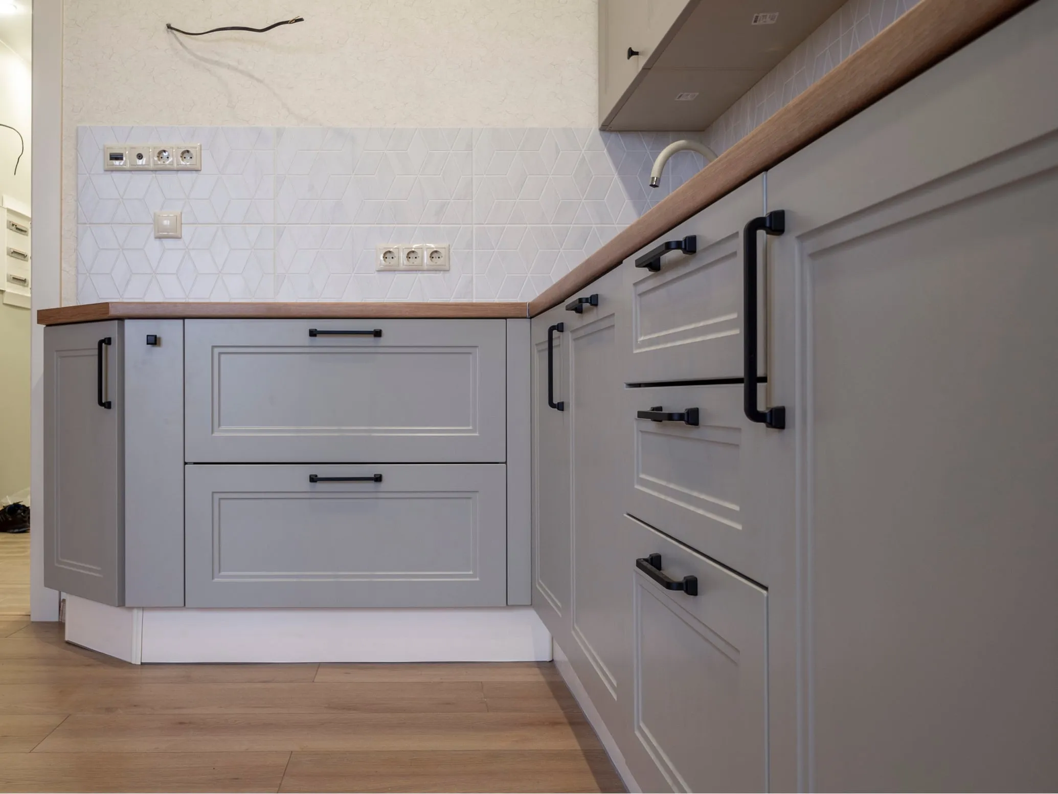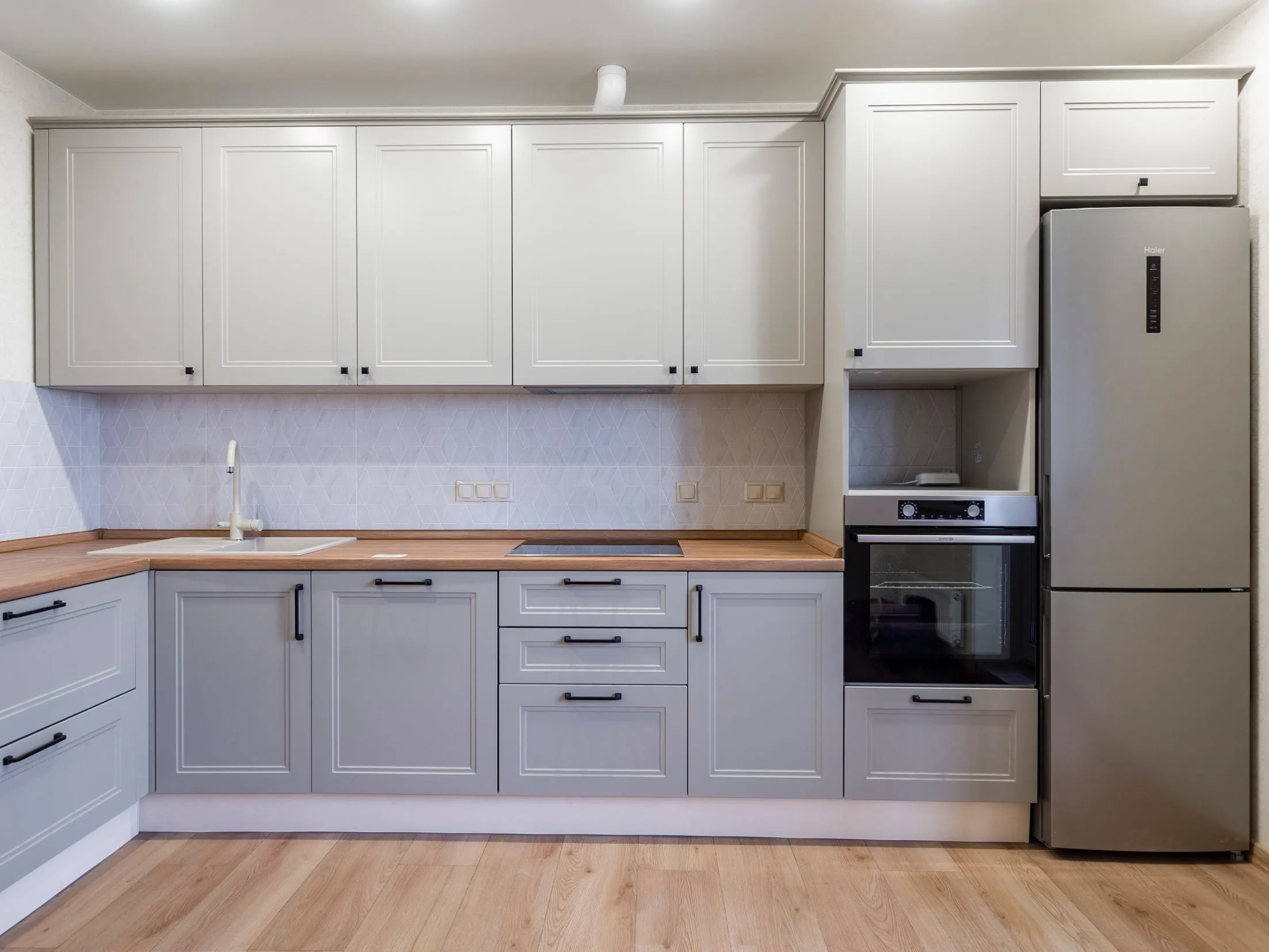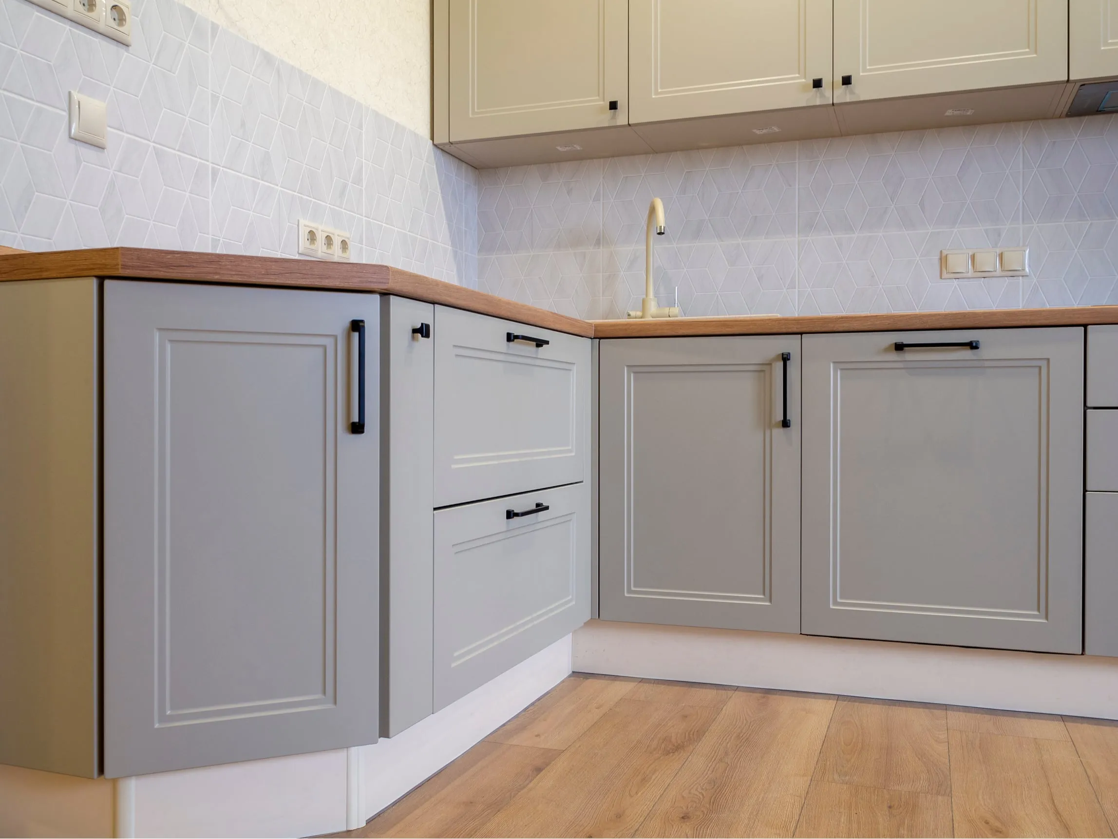 Фасады: МДФ Эмаль, Система, Теплый серый / МДФ ПВХ, Эйвон, Теплый серый