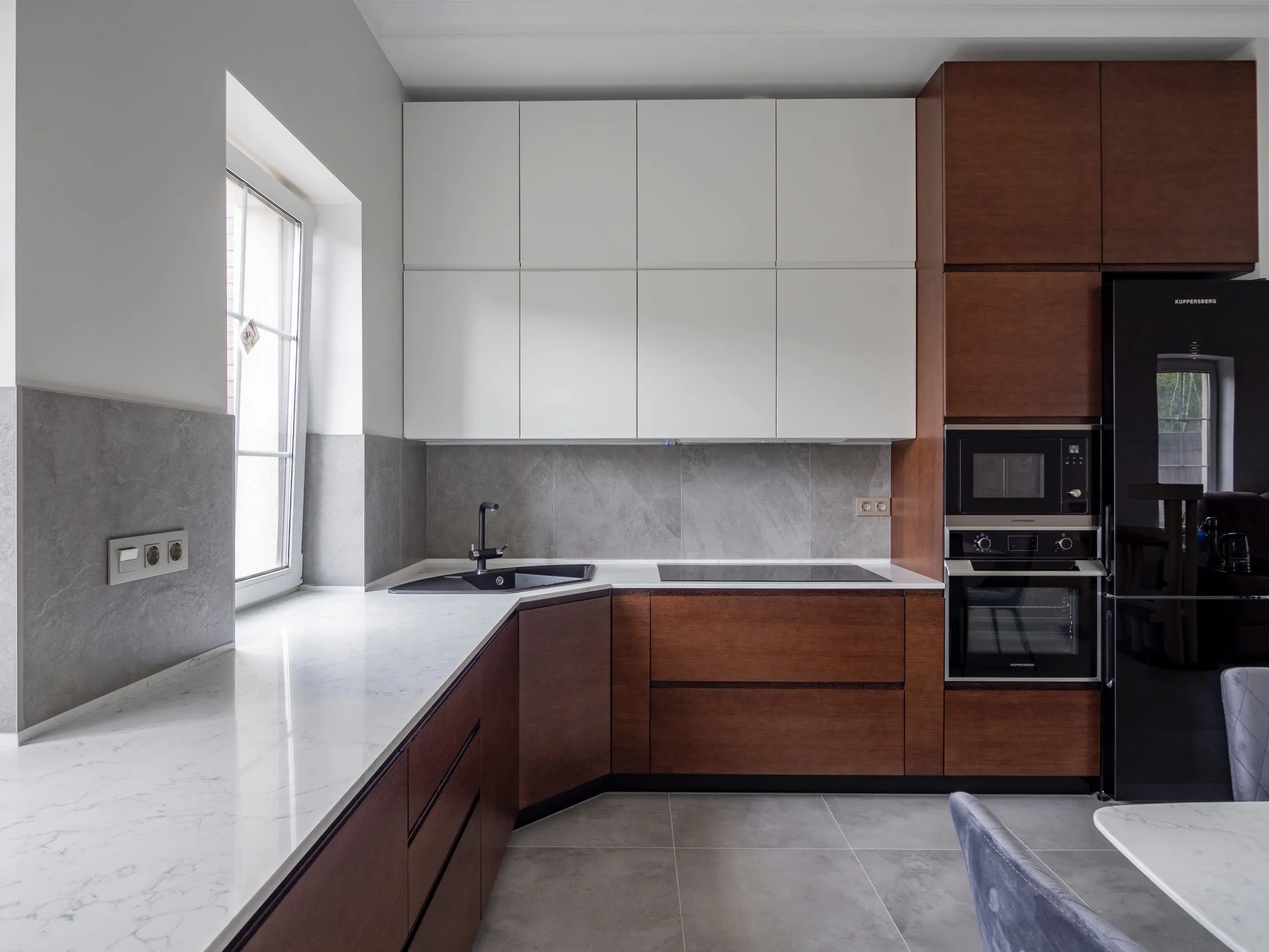 Фасады: ДСП Шпон дуба/ МДФ Эмаль Система Ral 9010 мат