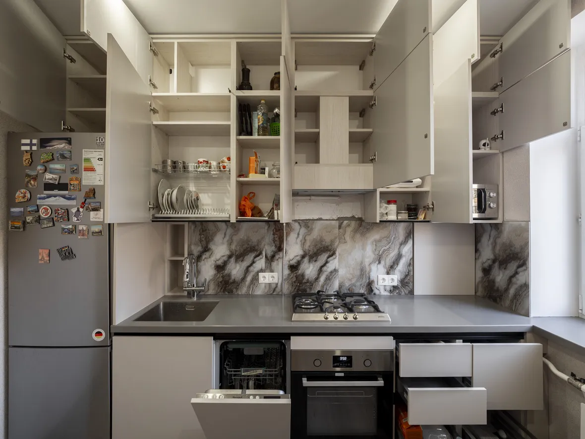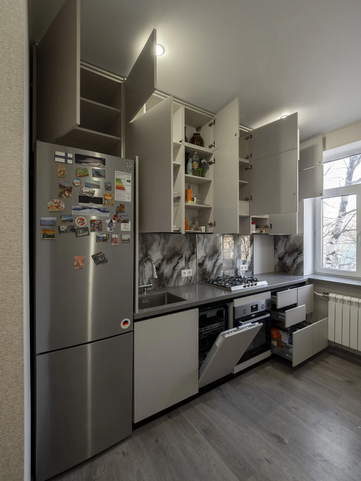 Техника: вытяжка - MAUNFELD, мойка - OMOIKIRI